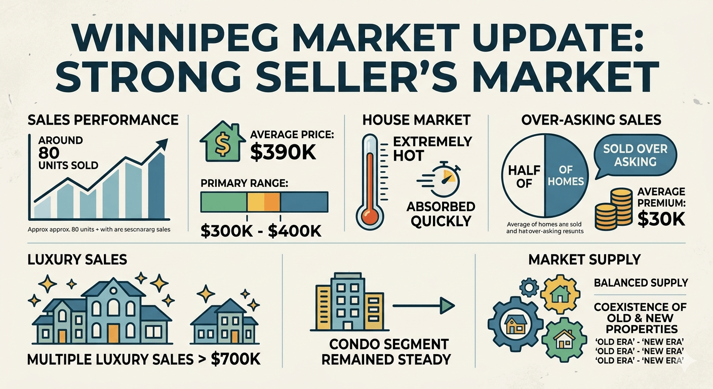 本次分析基于 2026-04-06 到 2026-04-12 温尼伯住宅和公寓成交的数据人工统计,尽量还原真实的市场,旨在揭示当前市场的价格分布、溢价趋势及成交特征。但无法保证绝对的准确,也不对买卖房产构成任何建议。